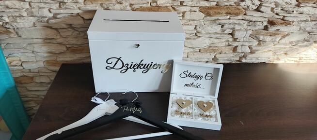 Sprzedam nowy zestaw drewnianych pudełek oraz wieszaków ślubnych. Zestaw zawiera Pudełko na koperty zamykane na ...